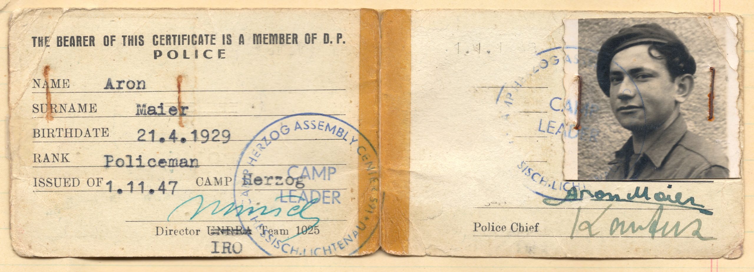 Martin said he was born in 1927, but post-war, in DP Camp Herzog, it was recorded as 1929. All subsequent papers carried this new date.