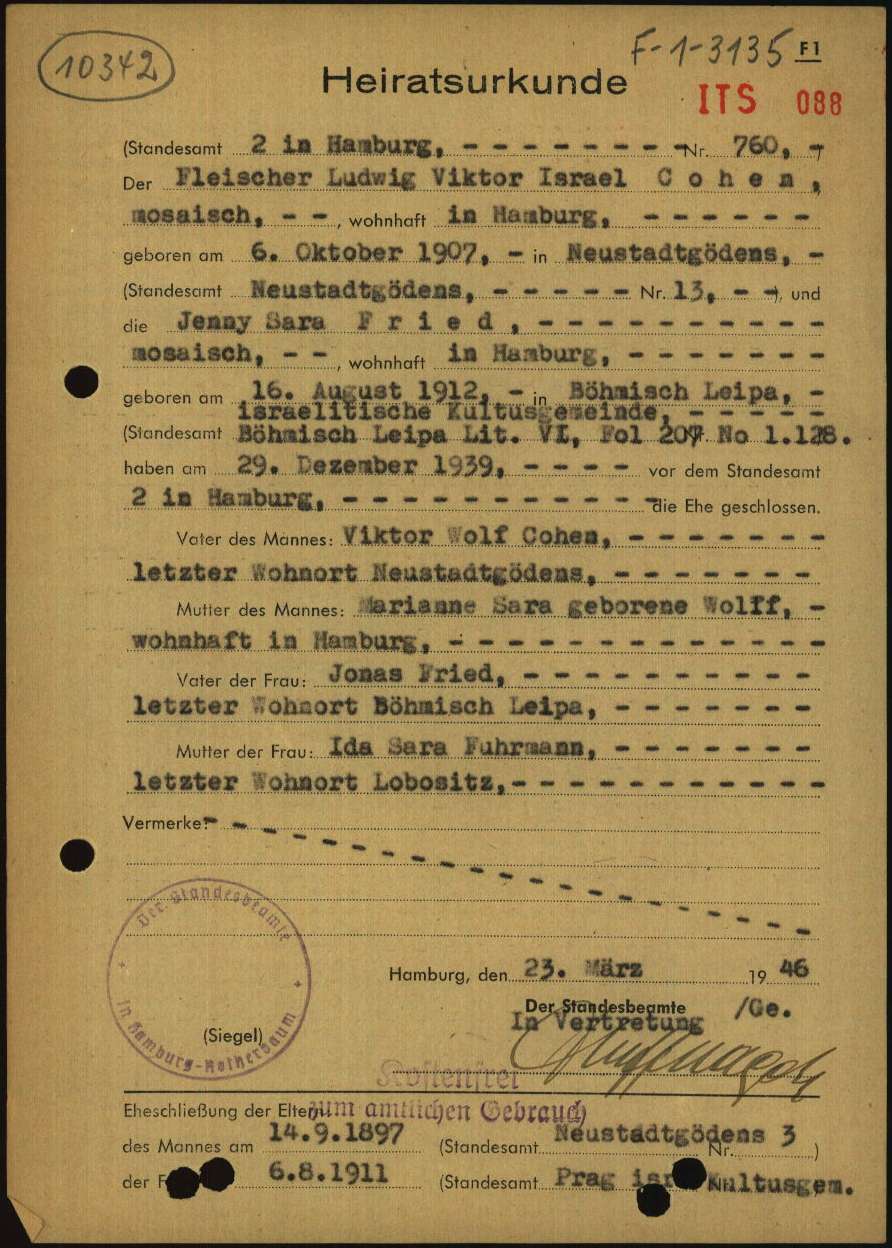 Married 01/01/1940 in Hamburg, Germany